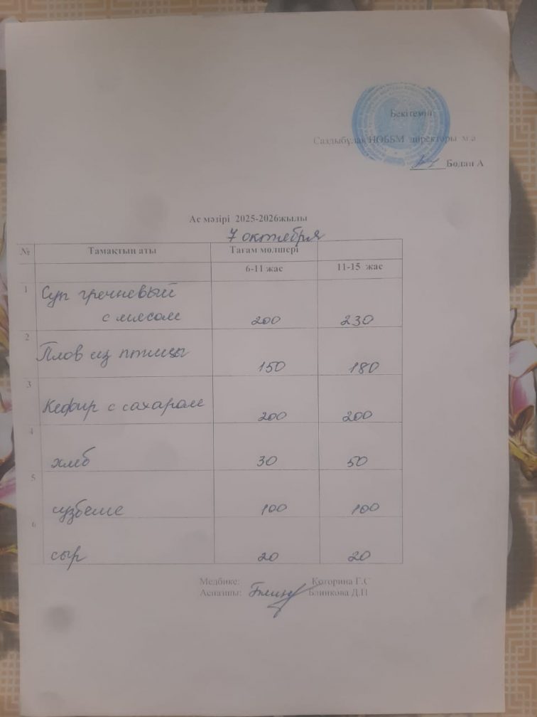 Меню на 07.10.2025
