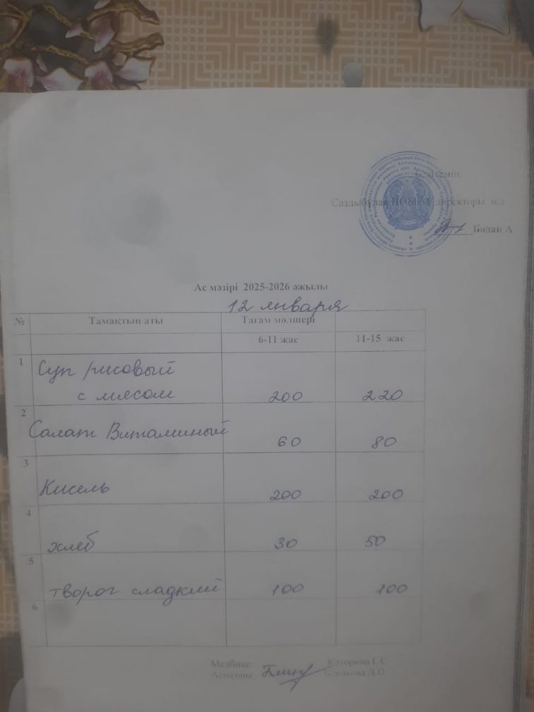 Меню на 12.01.2026