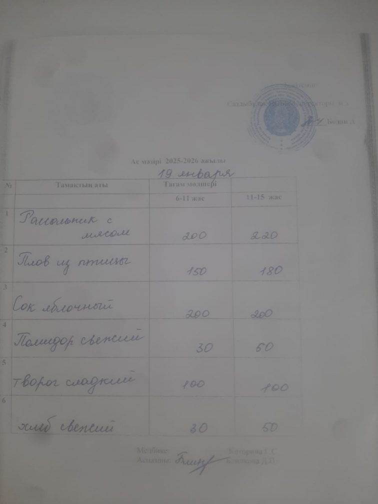 Ас мәзірі 19.01.2026
