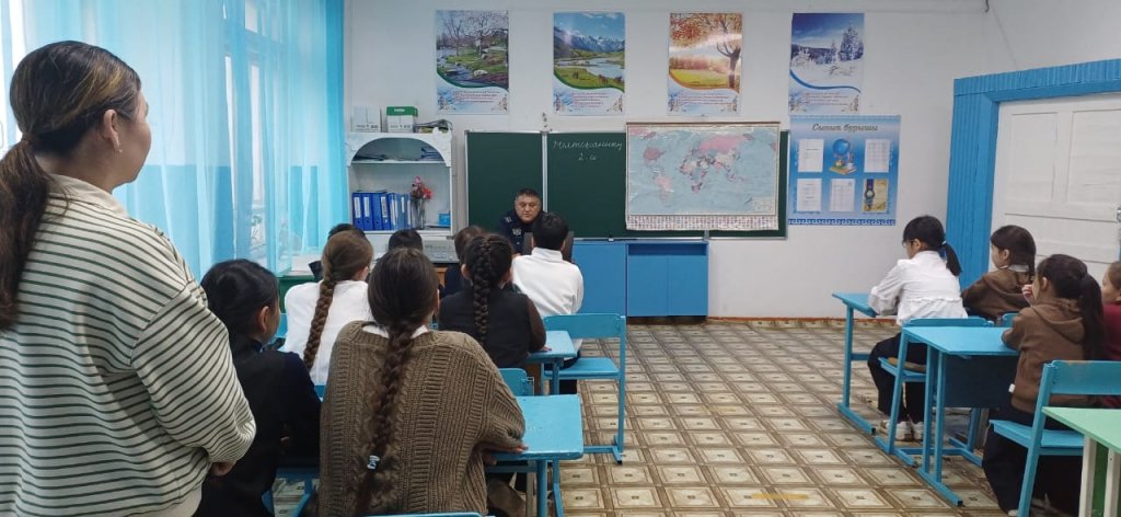 Саздыбұлақ НОББМ де 03.12.2025 күні аулымыздың учаскелік полицейі-Қайырғожин Асылбек Қаппасұлы мұғалімдер және оқушылармен шұғыл түрде кездесу өткізді.