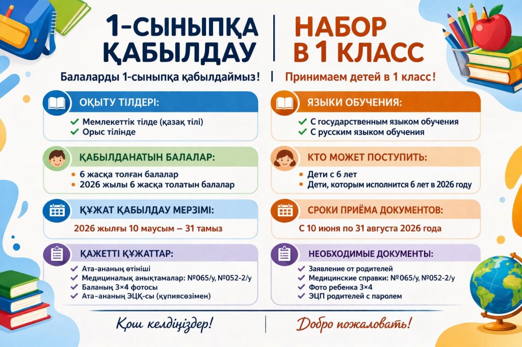 Ата-аналар назарына 1-сыныпқа білім беру ұйымдарына қабылдау және қабылдау мерзімі өзгерді: Қабылдауды 1-сәуірден емес 10- маусымнан басталады